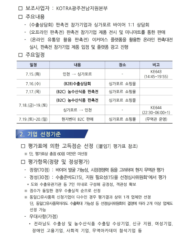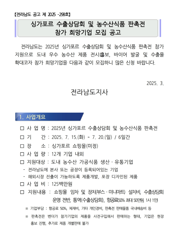 | ‒ | 「싱가포르 수출상담회 및 농수산식품 판촉전」참가 희망기업 모집 공고 |