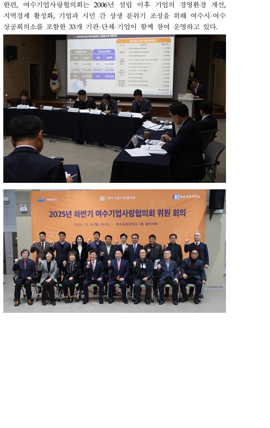 | 제목 | 여수상의, 2025년 하반기 여수기업사랑협의회 위원회의 개최 | ||