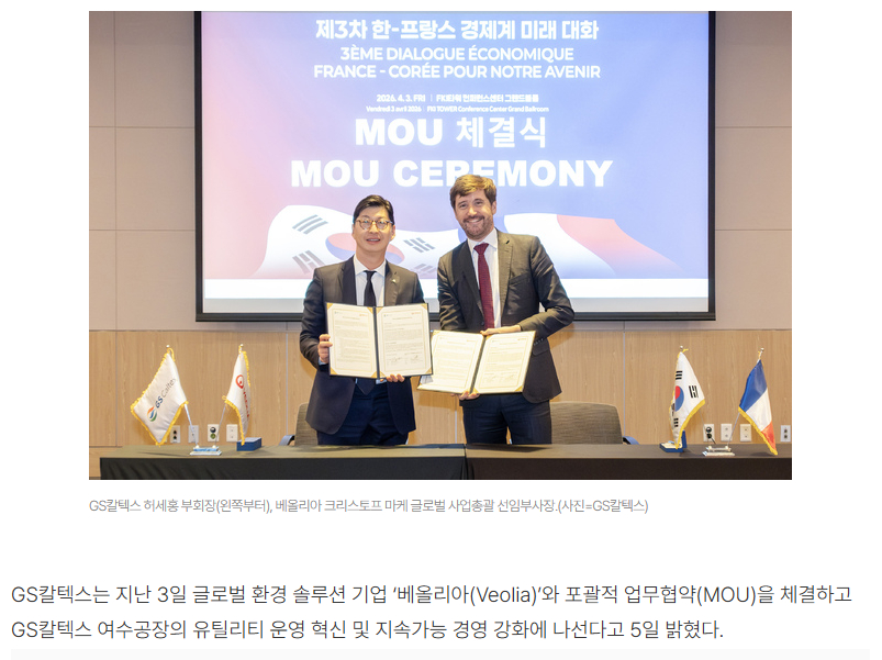 GS칼텍스, 세계 1위 글로벌 환경 솔루션 기업 '베올리아'와 전략적 MOU