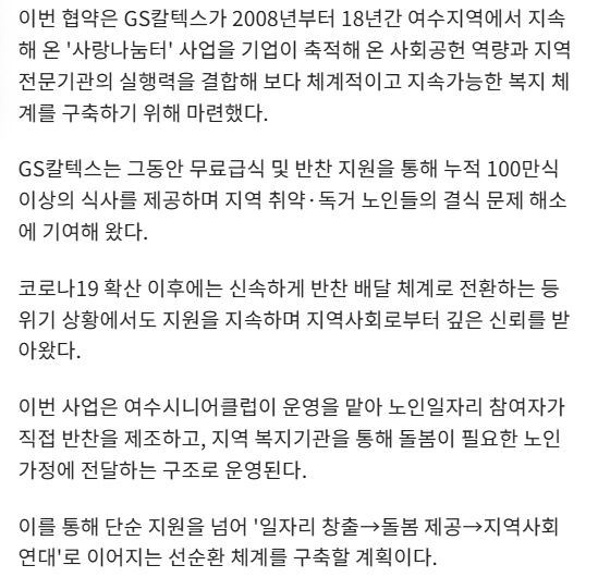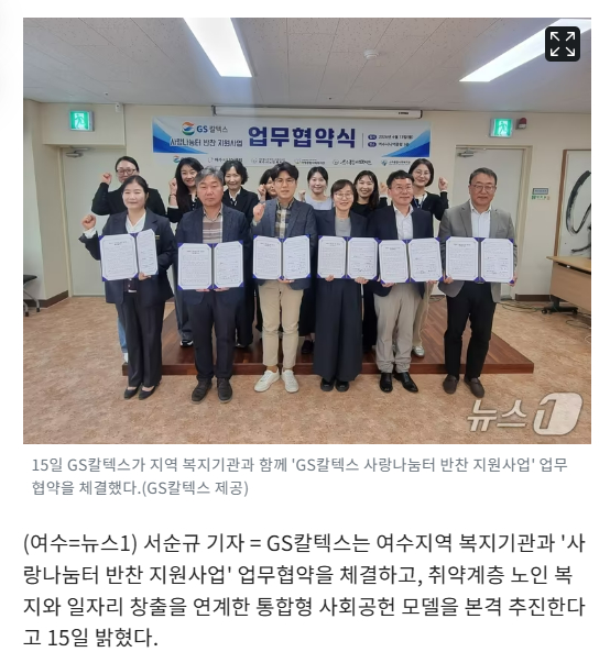 | ‒ | GS칼텍스, 여수지역 '노인 복지·일자리 통합모델' 추진 본격화 |
