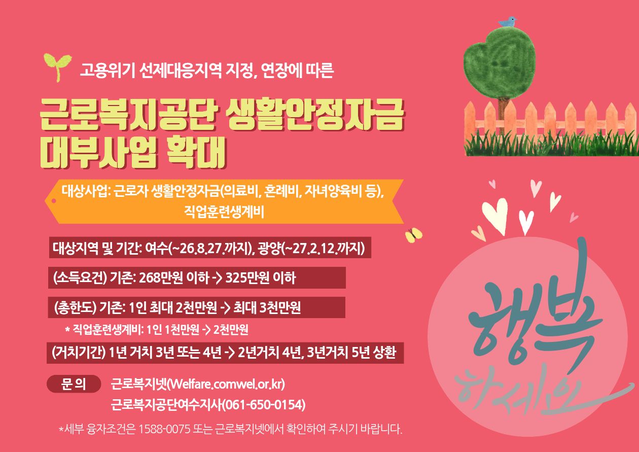 | 제목 | 「여수시 고용위기 선제대응지역 지정」및 지원제도 안내 | ||